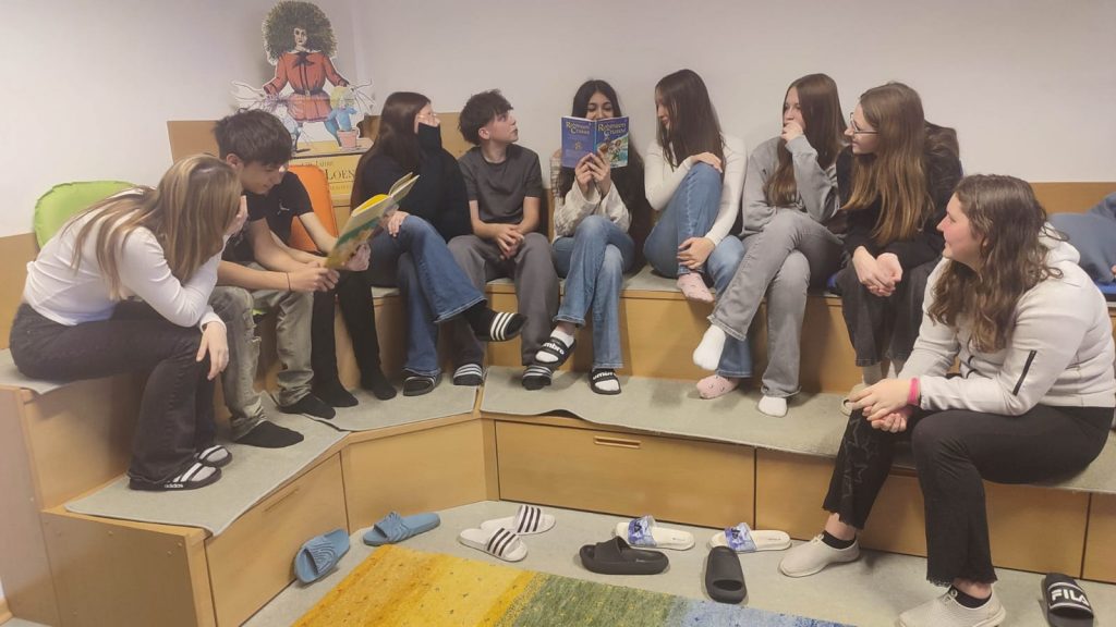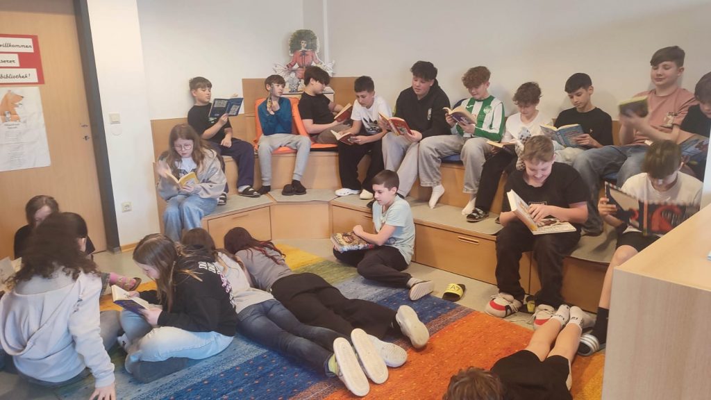 Unsere Klassen nutzten diese Gelegenheit, um die schuleigene Bibliothek zu besuchen und sich gegenseitig Geschichten vorzulesen. Auch unsere Lesepatinnen waren vor Ort.
